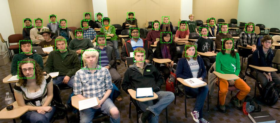 Train a face detector based on positive examples and "mined" hard negatives, detect faces at multiple scales and suppress duplicate detections